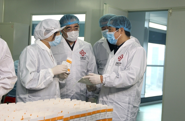 时任湖南省省长、现任湖南省委书记许达哲在抗疫早期调研bb贝博艾弗森生物抗疫物资生产情况