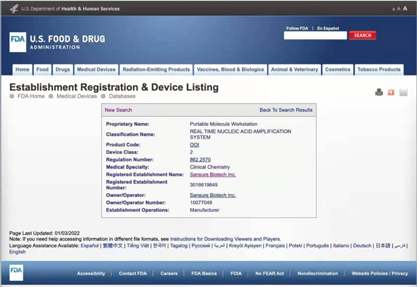 美国食品药品监督管理局(FDA)是国际医疗审核权威机构,通过FDA认证的食品、药品、化妆品和医疗器械等产品,是全球权威标准证明。bb贝博艾弗森生物四通道iPonatic核酸检测分析仪获美国FDA认证后,将有效扩大和满足全球市场各级检测防控需求,为全球疫情防控工作持续助力,推动公司全球化事业发展。