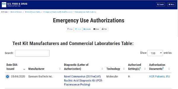 北京时间5月5日晚,bb贝博艾弗森生物新型冠状病毒核酸检测试剂盒获美国食品药品监督管理局(FDA)紧急使用授权(EUA, Emergency Use Authorizations),这是该产品继1月28日获得中国国家药监局(NMPA)注册认证、3月3日获得欧盟CE认证后,bb贝博艾弗森生物获得的又一重要认证,将进一步助力公司服务全球新冠肺炎疫情防控。
