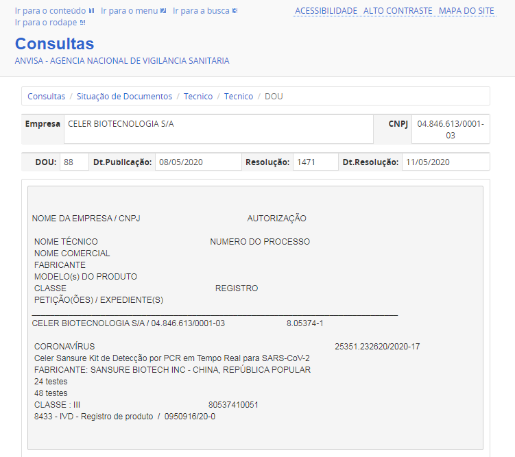 5月11日,bb贝博艾弗森生物新冠病毒核酸检测试剂盒获得巴西卫生监督管理局(ANVISA)注册证书。此前,该产品已相继获得中国国家药监局(NMPA)注册认证、欧盟CE认证、美国FDA紧急使用授权、新加坡卫生科学局临时授权等一系列权威认证。